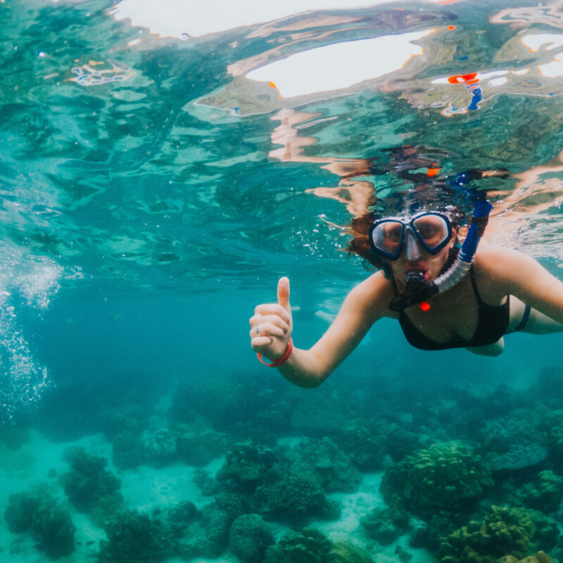 Snorkeling gear (mask, fins, and life jacket)